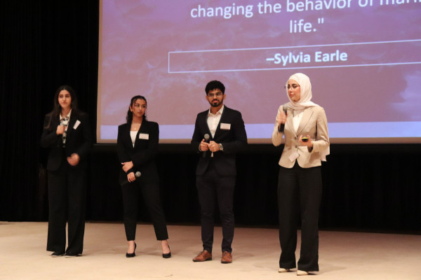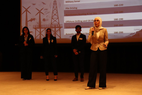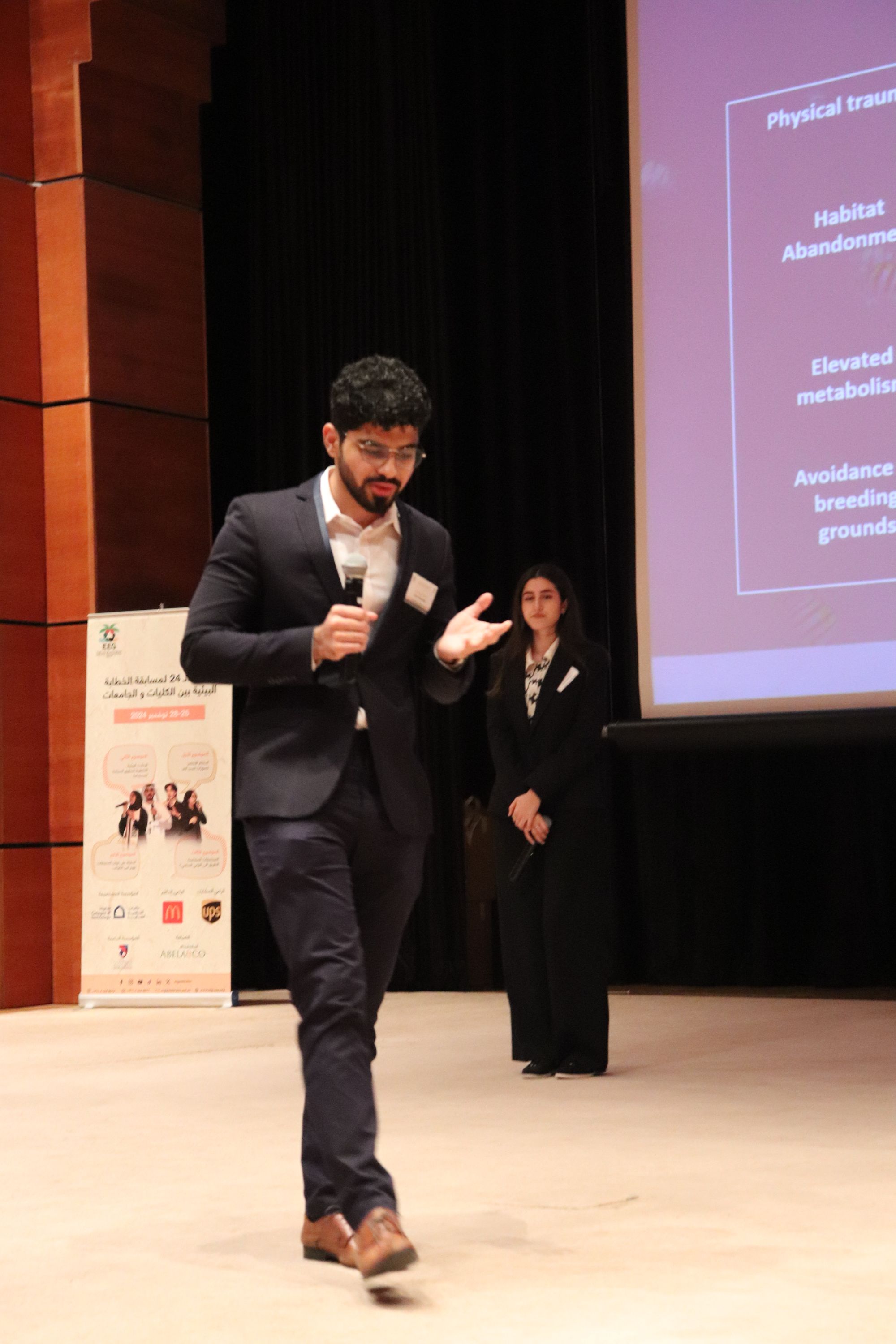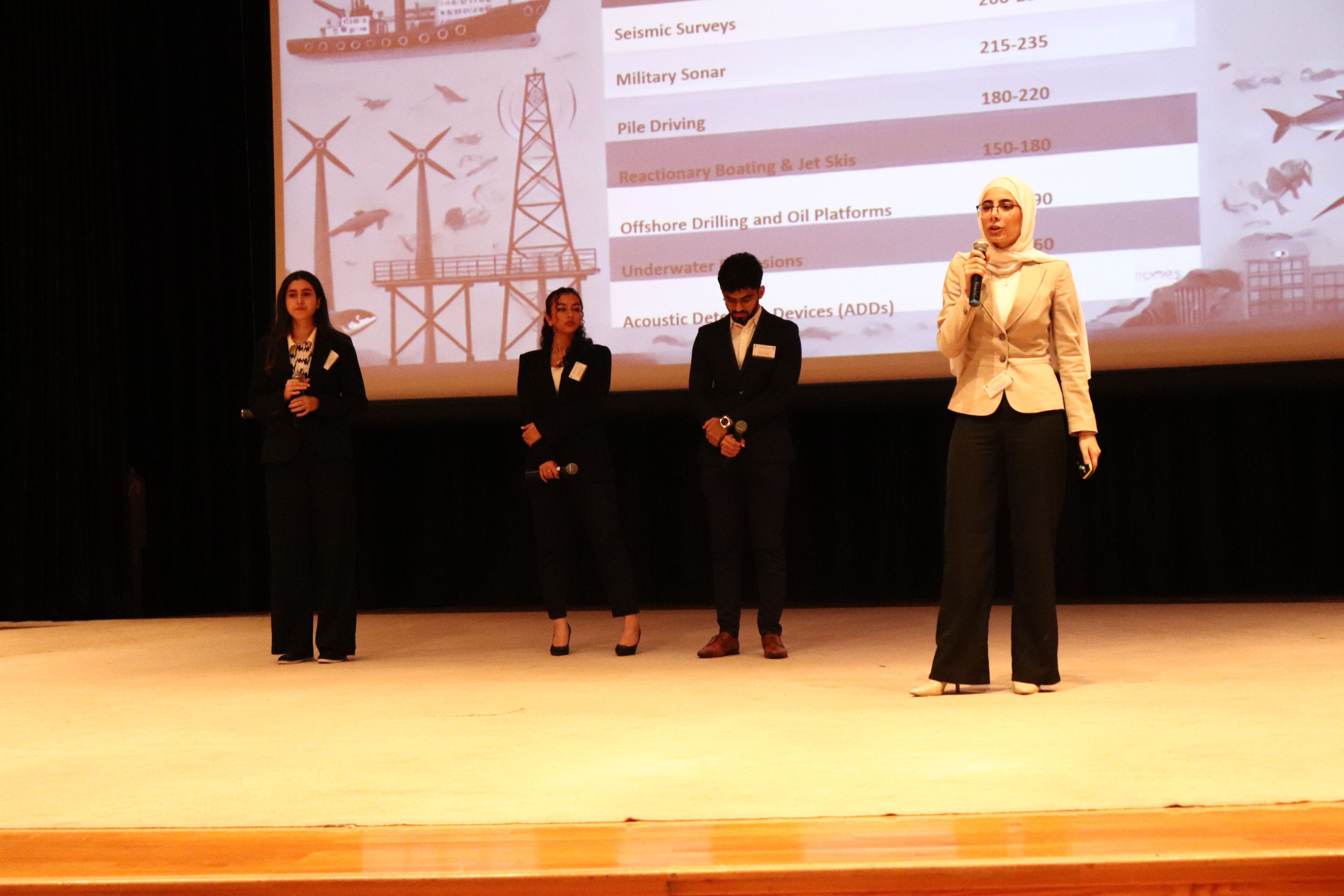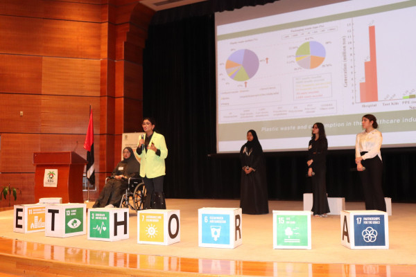 A team from the College of Architecture, Art, and Design, along with the College of Engineering and Information Technology, represented Ajman University in the competition. They presented an innovative and sustainable solution under the theme: "Green Innovation: Visions for the Cities of Tomorrow", competing against teams from various universities across the Middle East and North Africa (MENA) region. Additionally, a team from the College of Dentistry participated by presenting a project under the theme: "Preserving Ocean Balance: Understanding Planetary Security", which highlighted the role of oceans in enhancing environmental security and mitigating climate change.