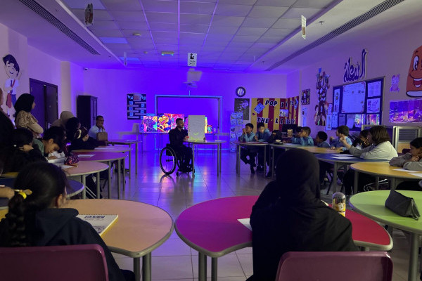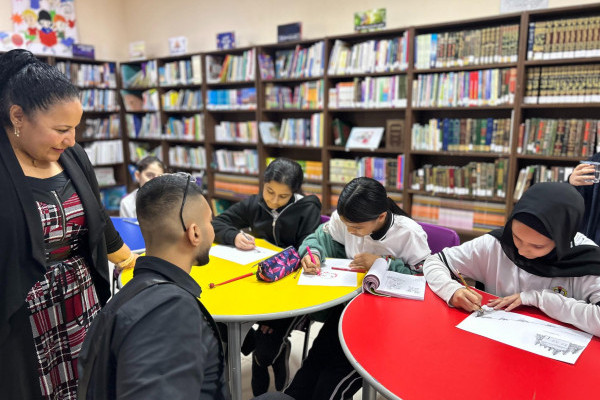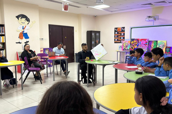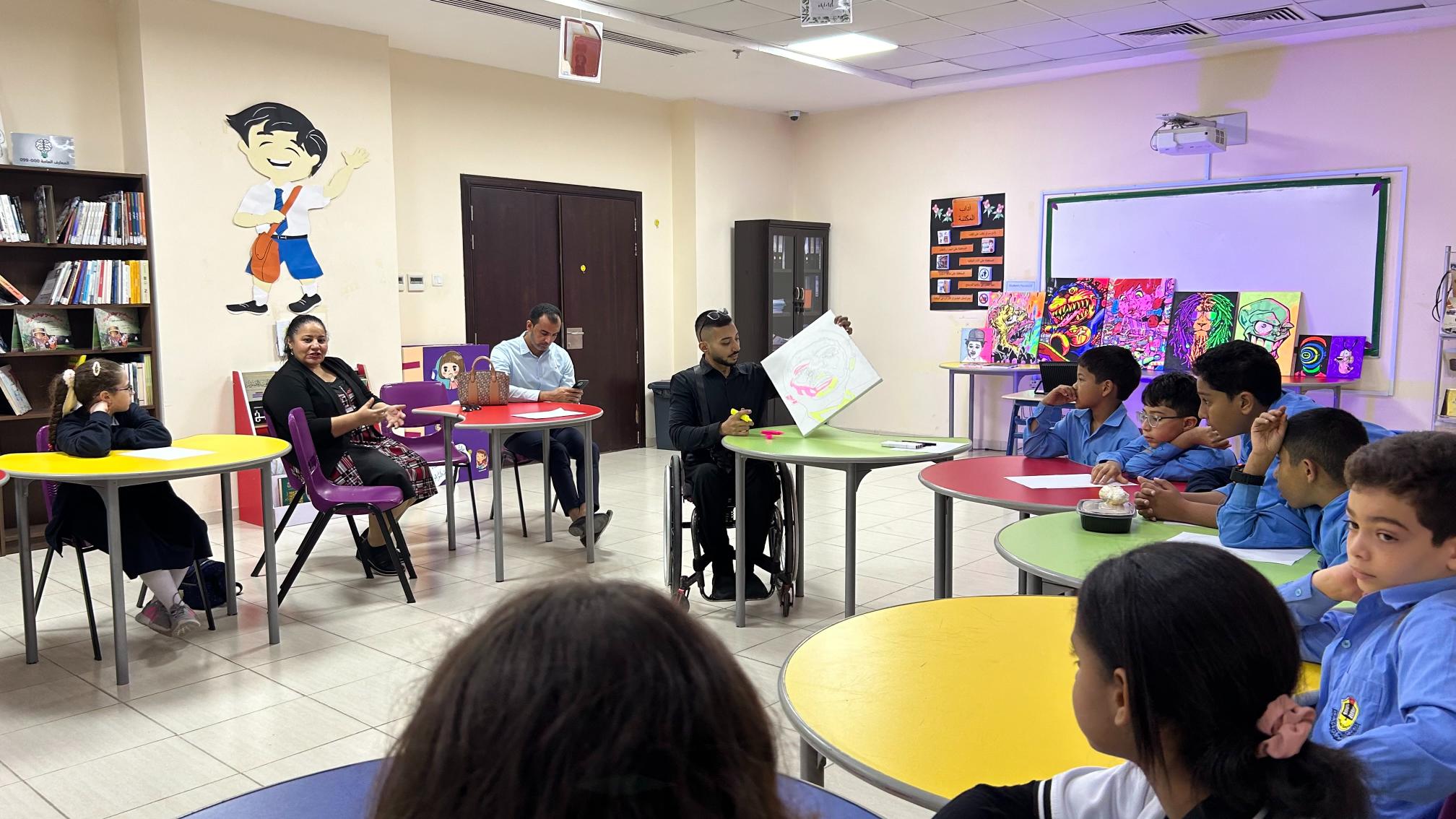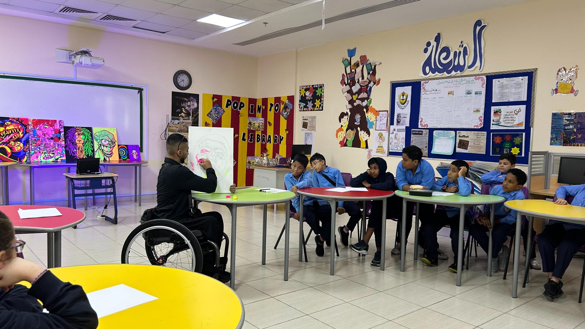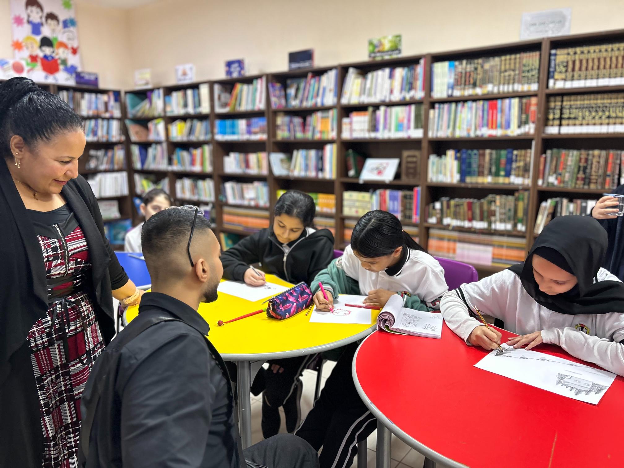The first activity of the initiative was a painting workshop organized at the Shola American School, led by talented student Abdul Razzaq Ali Al-Hadheer from the Department of Psychology. He amazed the young students with his unique techniques, providing them a chance to express themselves creatively while fostering a love for learning and self-expression.