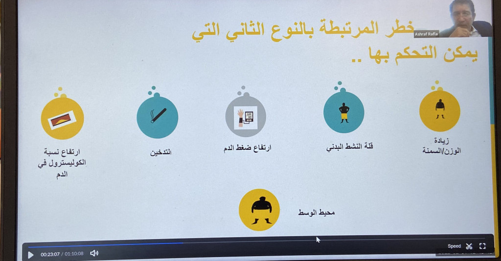 The first session was presented by Dr. Ashraf Nazmi, a nutritionist at the Ministry of Health and Prevention. The webinar addressed diabetes, its types, causes and methods of prevention. Guidelines for good health were shared such as regular exercise and eating healthy food.