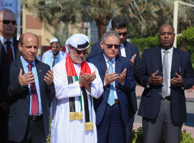 Flags were flown at half-mast at Ajman University at 8:00 am, and the University staff stood one-minute silent prayer at 11:30, followed by a ceremony of raising the flag of the State accompanied by the national anthem.