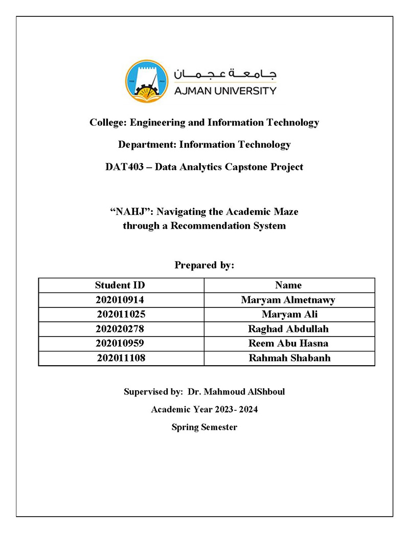 Students at different stages of their educational journeys face the difficult task of selecting from a wide range of academic and professional opportunities in today's dynamic world. According to reports, young people, especially those in the OECD countries, have greater unemployment rates than adults over the age of 25 (Musset, P., & Kureková, L., n.d.). This emphasizes how urgently early-career decision-makers need nuanced guidance. Our team has developed a customized recommendation system that is tailored to the unique profiles of IT and engineering students. The system offers focused recommendations for improving career paths. It is based on data extracted from platforms such as Coursera and LinkedIn and student academic records. Our method starts by gathering the necessary data such as user input and students' grades from IT classes and storing it in the MongoDB database, by utilizing machine learning algorithms to process and predict CGPA results. The “NAHJ” system provides personalized recommendations based on these forecasts, such as extra courses for students in need of academic help, career, and postgraduate opportunities for top achievers. The system presents these recommendations in an engaging and easily navigable user streamlit interface. The model is dynamic and grows with the student because of ongoing adaptation to user feedback. This project makes a substantial contribution to students' readiness for the workforce and skill development. We show that meeting the specific needs of students moving from educational institutions into the workforce requires not only a feasible but also an innovative, data driven approach.