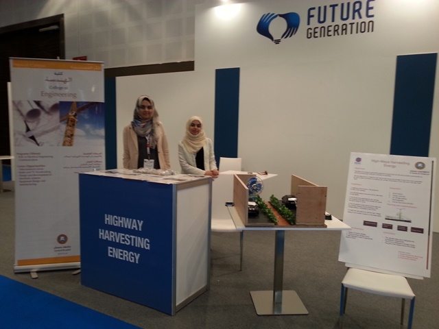 College of Engineering participated with three projects in the field of renewable energy the winning project was "Highway Energy Harvesting" presented by students Arwa Yousf, Esraa Abdelrahman and Amina Alabdoliwon, it won amongst other ideas presented by participants. This project is a smart system that converts the wind energy, generated from the movement of the cars on the highways to an electrical energy which can be reused and utilized.