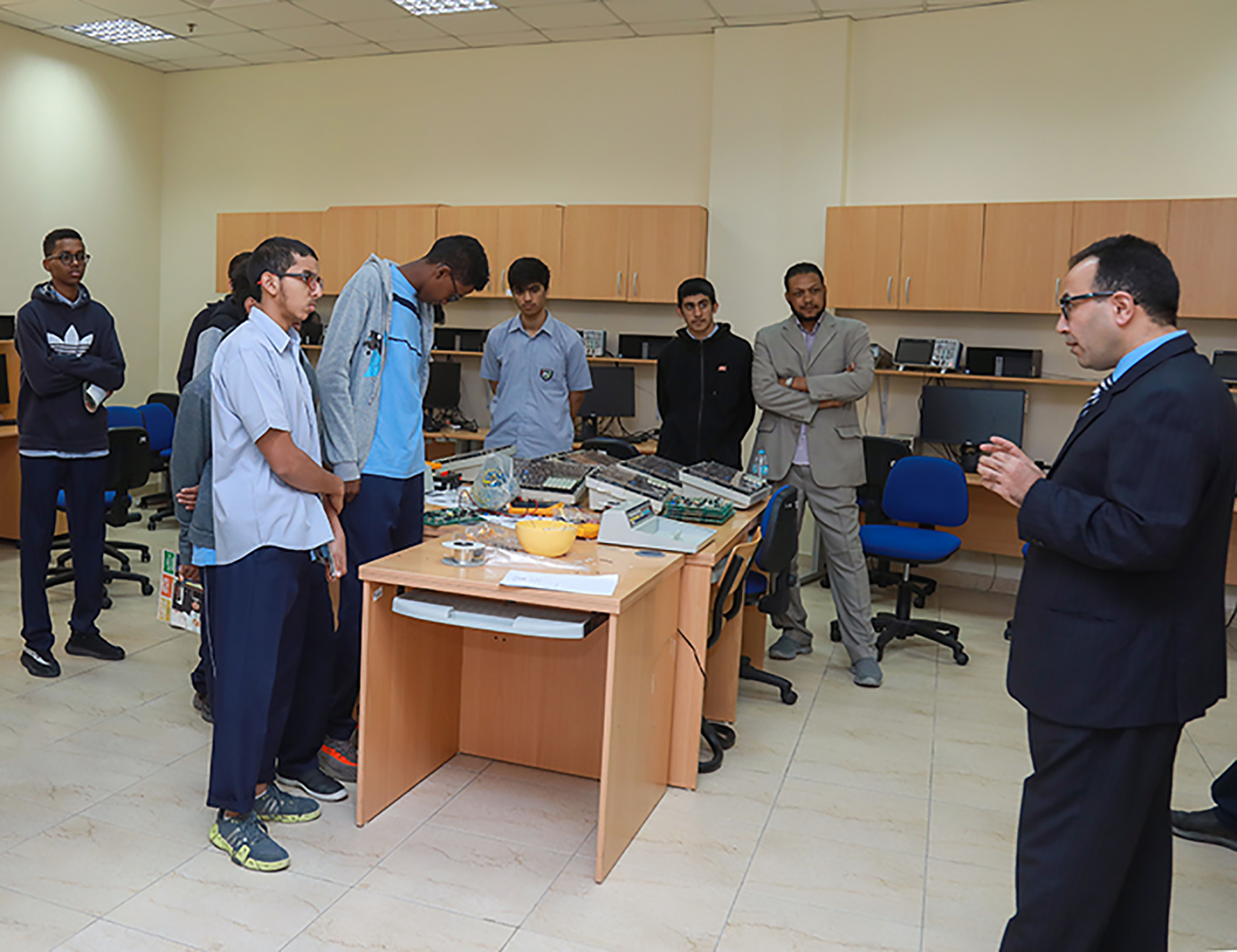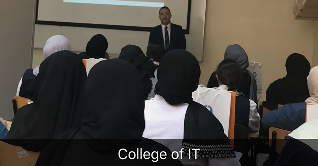 On December 10-11, 2017, students from the Deans School visited AU Campus. Dr. Haitham Yaish and Dr. Nidal accompanied the students while they toured the college of IT and introduced them to all the different majors and facilities offered by the college.