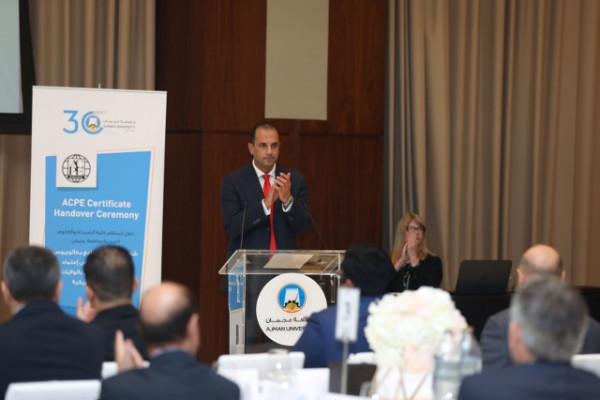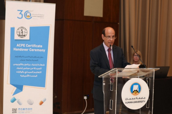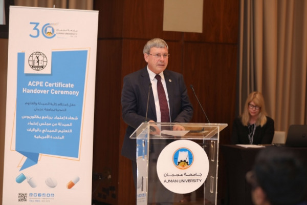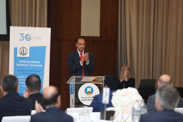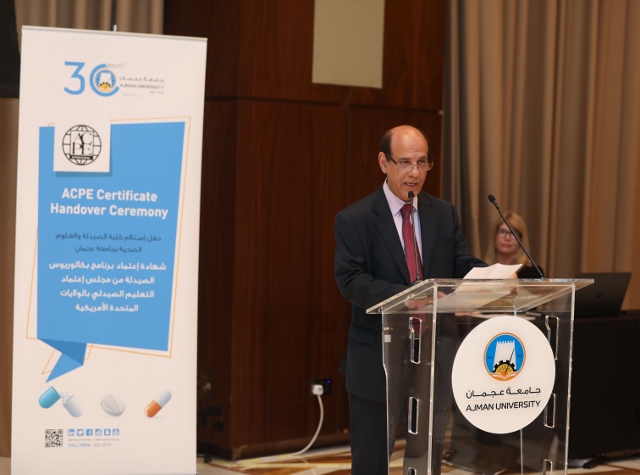 Dr. Mike Rouse, who flew from the United States to attend the ceremony, said, “Ajman University is the second in the Emirates to achieve this distinction.” He added that the ACPE is fully aware of how much work is involved in the process and highly commended AU for its great efforts.