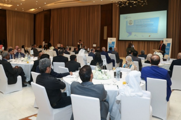 The certificate was presented to AU Chancellor Karim Seghir and Prof. Nageeb Hassan, Dean of the College of Pharmacy and Health Sciences, by Dr. Mike Rouse, Assistant Executive Director of Professional Affairs and Director of International Services at ACPE. In attendance was Prof. Mohamed Yousif Baniyas, Director of the Commission for Academic Accreditation, Ministry of Higher Education, as well as AU partners, alumni, faculty and staff.
