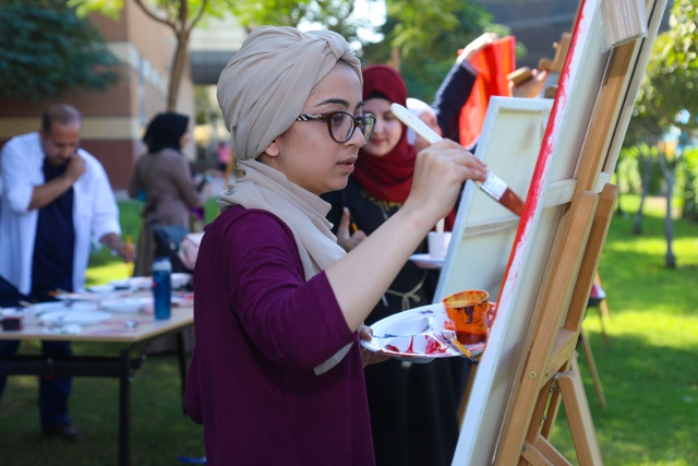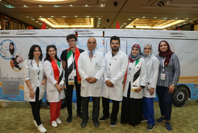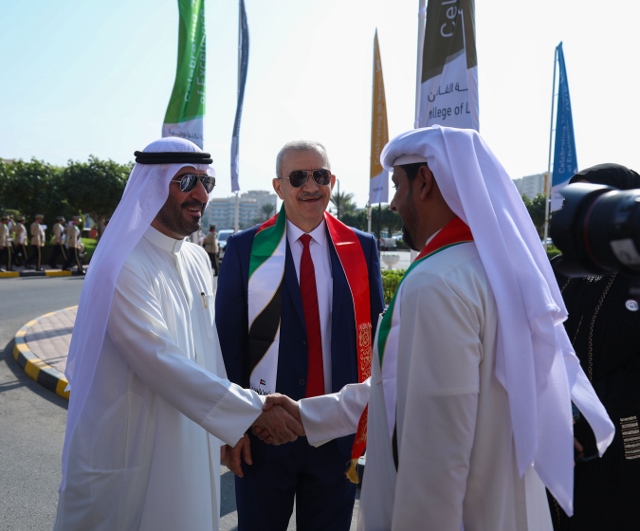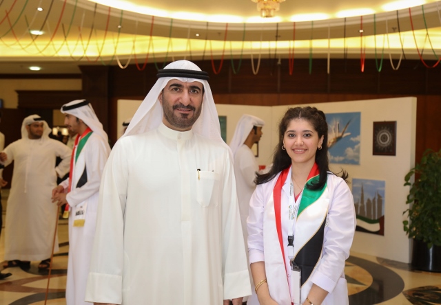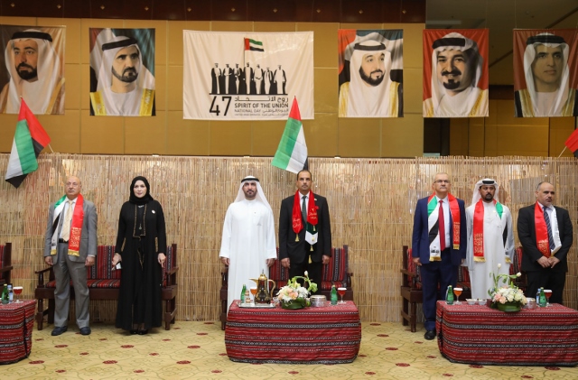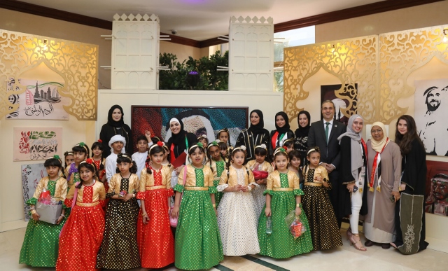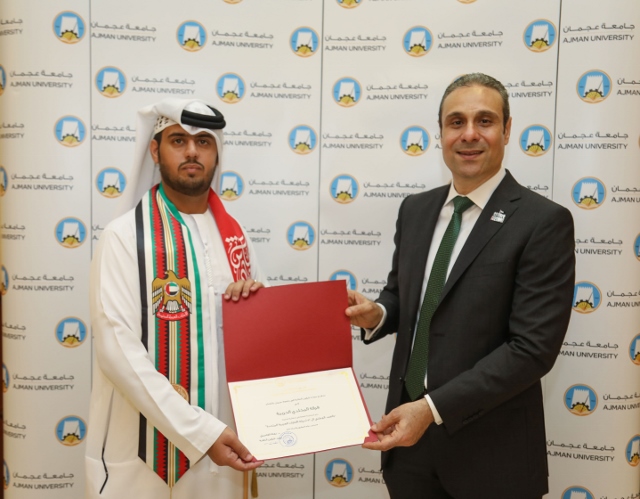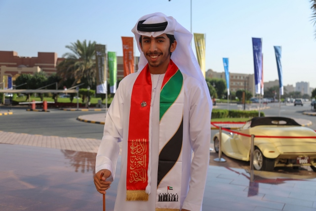 HE Sheikh Dr. Majid bin Saeed Al Nuaimi, Chairman of the Ruler's Court of Ajman, accompanied by Dr. Karim Seghir, AU Chancellor, and Dr. Nahla Al Qassimi, Dean of Student Affairs, inaugurated Ajman University celebrations on the 47th National Day of the United Arab Emirates, The celebrations were under the slogan "This is Zayed, this is the UAE.”