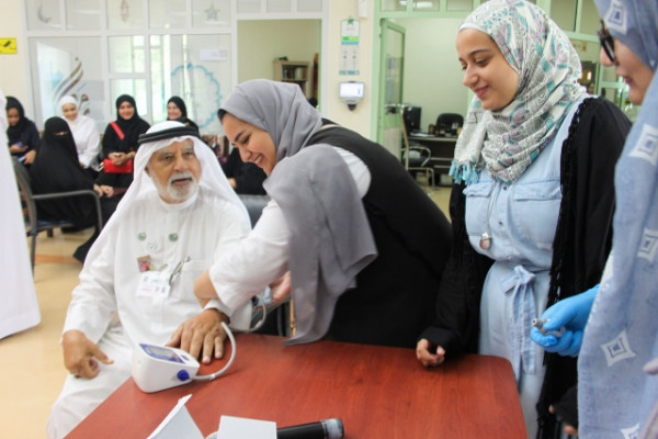 A group of student clubs affiliated to the Deanship of Student Affairs at Ajman University organized a visit to the Happiness Center for the Elderly at the Family Forum in Dubai on the occasion of International Day for Older Persons celebrated annually in October. The students were briefed on the center's facilities and services provided to the center's guests.