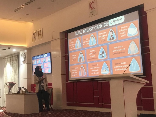 Dr. Sawsan Shanableh, AU faculty member, presented an interactive lecture on breast cancer types and stages. Furthermore she highlighted the importance of how to conduct periodic self-examination of the disease and how to treat it according to its stage.