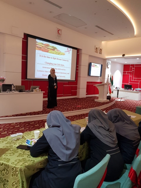 As part of Ajman University initiatives of the year of Zayed, lecturers from the College of Pharmacy & Health Sciences, held two workshops and lectures on special campaign awareness about breast cancer.