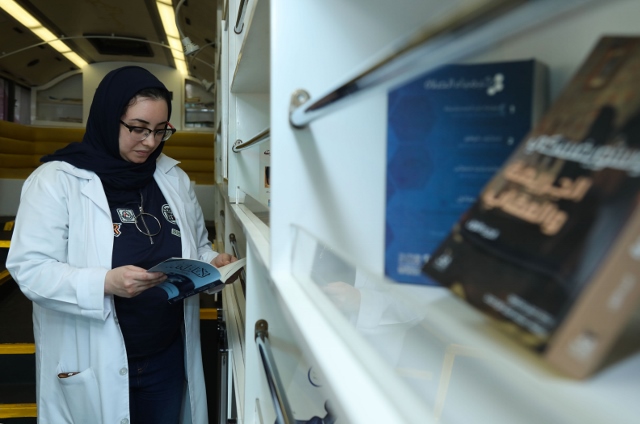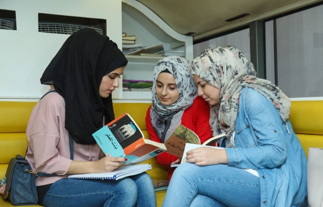 The Book Club at the Deanship of Student Affairs encouraged students to visit the mobile library. Many of the avid readers are frequent visitors to this unique bus, which brings books to them.