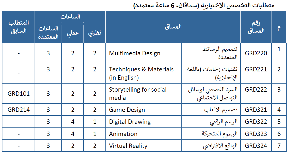 Major Elective Courses: Two Courses = 6 Credit Hours