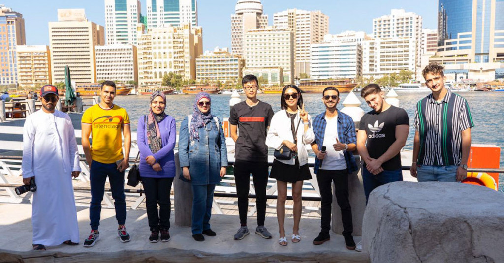 As per the College of Mass Communication priority to develop the specialized skills of its students, the training committee organized a field trip for students of radio and television, with cooperation and coordination of "Meraas Holding". The visit which was organized by Dr. Aliaa Anter and Dr. Dina El-Khattat, aims to involve the students with community through their visual production, to promote the heritage sites worth visiting in the UAE, like the "Al-Saif" waterfront interface which combines both heritage and contemporary in its architecture, that gives visitors the opportunity to discover the heart of Dubai Creek.