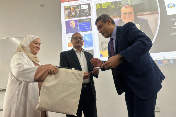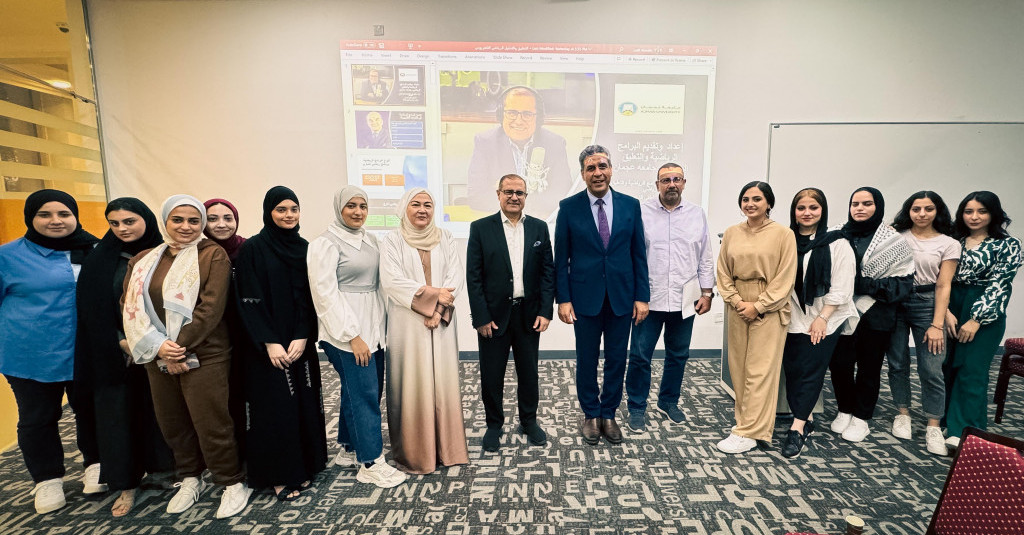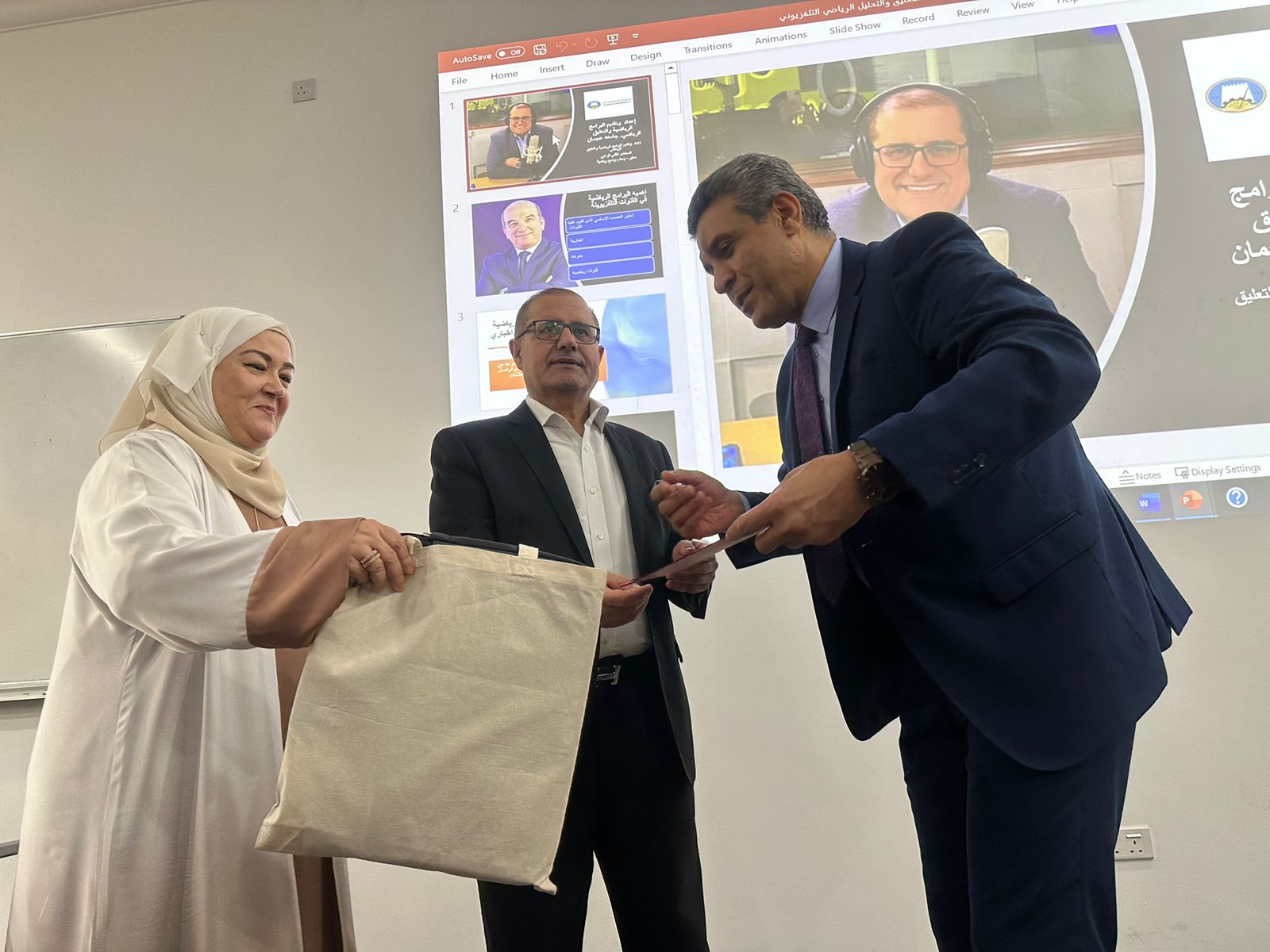 Within the framework of the Sports Program Production course activities, the College of Mass Communication organized a workshop titled “Sports Program Production”. with the presence of Dr. Hossam Salama, the dean, and under the supervision of Dr. Amal Badr, The workshop was conducted by the media professional Latifi Al-Zoubi, the founder of Al-Laith Media Group and the head of the sports department at Al-Mashhad channel, discussing topics such as types of sports programs, qualities of a sports presenter, and essential tools for sports program production. Students expressed appreciation for the insights gained and motivation to apply the acquired skills.
