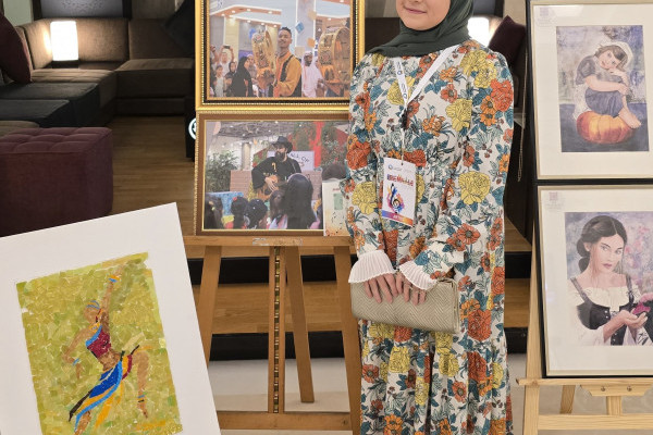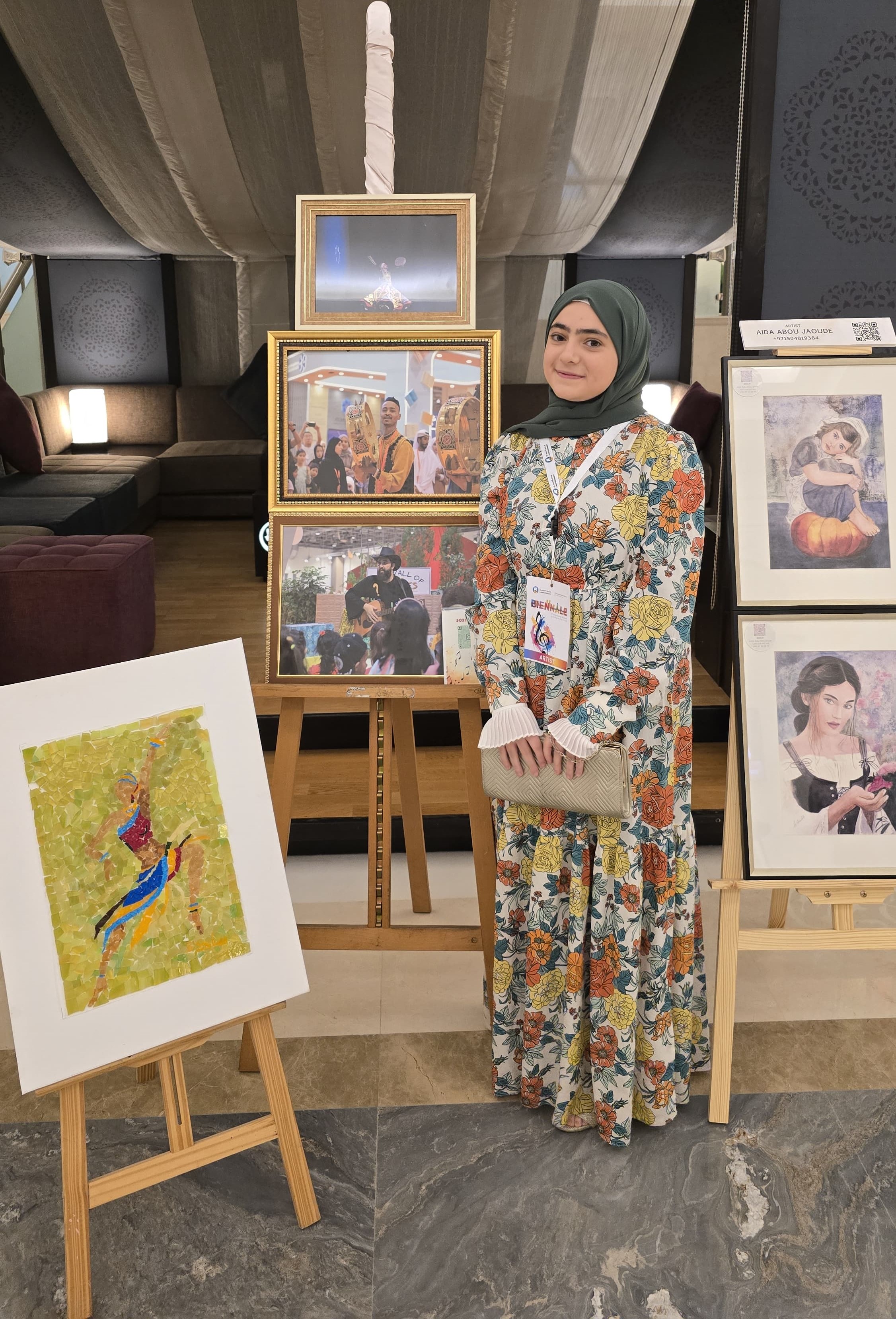 Student Rawan Mohammed Al-Najjar participated in showcasing her photography at the Second International Biennial in 2025 alongside several professional artists in photography and drawing. Rawan presented three photographic works and explained to the audience how her involvement in volunteer work inspired her photography topics. She emphasized that her photos are more than mere documentation of daily life; they express the inherent nature of art and highlight the connection between music and photography in conveying ideas to the audience without the need for words. When asked about her interest in capturing the effects of music, Rawan replied, Music is not just instruments and musical notes; it is a multidimensional art and a language that speaks to the soul."