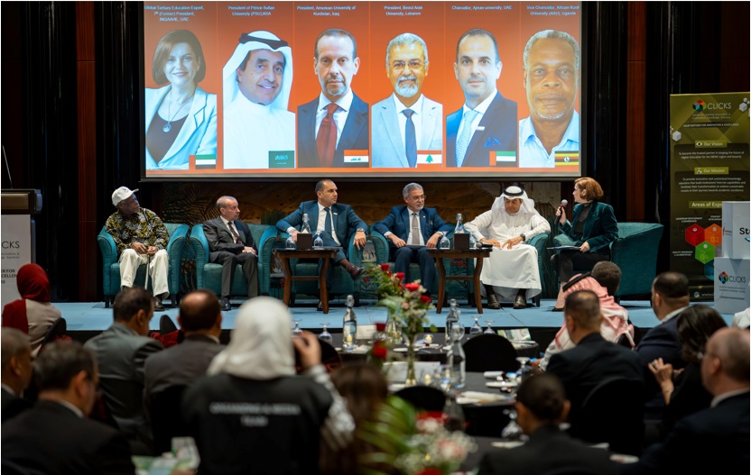 For the fourth consecutive time, the students and alumni of the College of Mass Communication at Ajman University participated in organizing the fourth cycle of the Zairi International Awards for Excellence in Higher Education, in collaboration with the Center for Learning Innovations and Customized Knowledge Solutions (CLICKS).