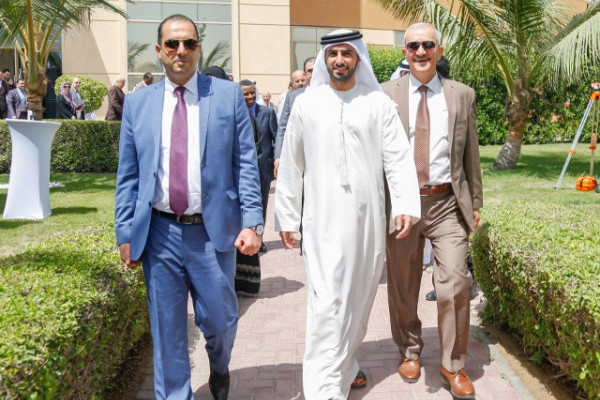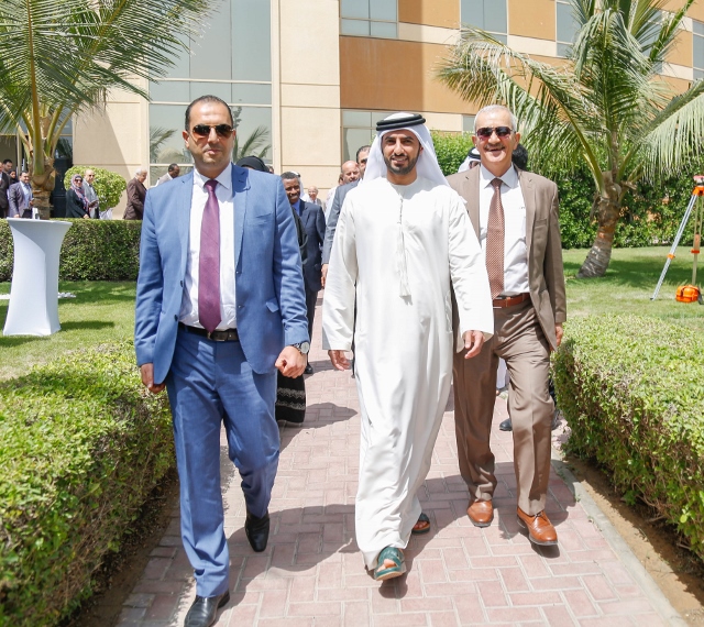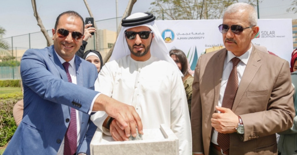 His Highness Sheikh Rashid Bin Humaid Al Nuaimi, Head of Ajman Municipality and Planning and Vice-Chairman, Board of Trustees AU did the honors of laying the foundation corner stone of the Renewable Energy Centre Ajman. This Centre will also enable the Solar Decathlon team Aqua Green Ajman to build an eco-house as part of the competitions requirement. Dr. Karim Seghir, Ajman University Chancellor welcomed the gathering of Vice-Chancellors, Deans, faculty Members and students.