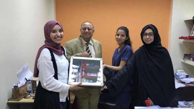 As part of the Ajman University's efforts to integrate its students into the community, a group of male and female students donated fully equipped first-aid kits to several members and sectors of the community. This was part of the first aid course given under the supervision of Ms. Ala Amiri. The distribution covered a wide range of charities, private sector, as well as various departments within the campus. This initiative, which is an optional for students in the course, reflects the University's strategy of serving the community and interacting with the members.
