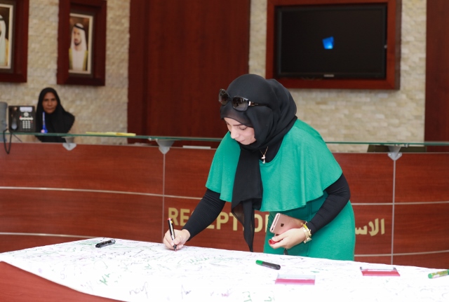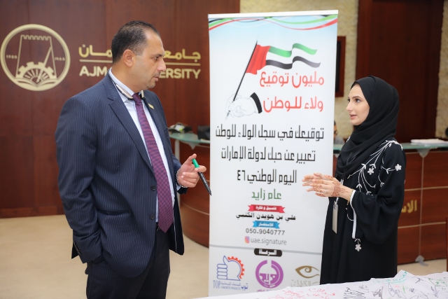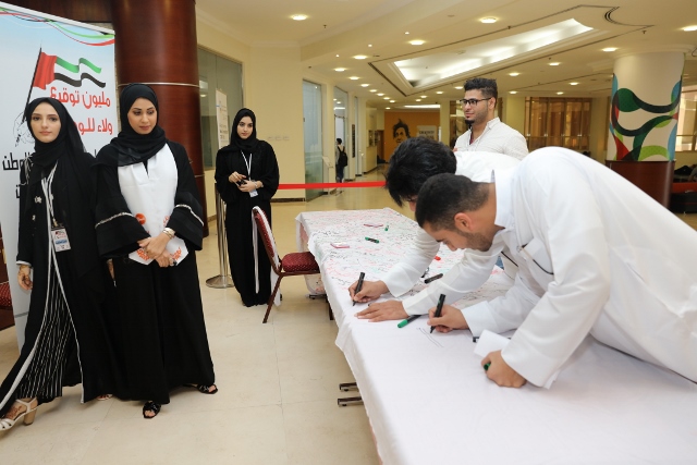The Office of Student Activities under the Deanship of Student Affairs in cooperation with Al Dhaid Sports Club organized` the Million Signatures Campaign for UAE. On the upcoming, occasion of the 46th National Day of the United Arab Emirates. This initiative was proposed by Ali bin Haydain Al Ketbi under the auspices of Al Dhaid Sports Club.