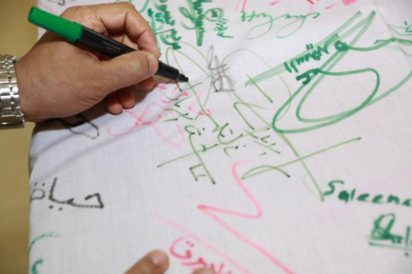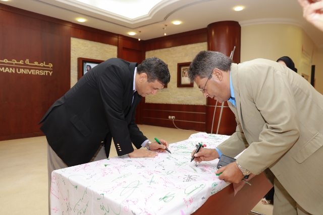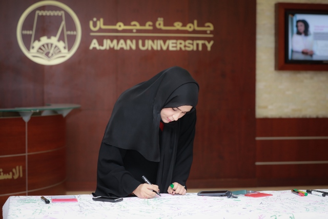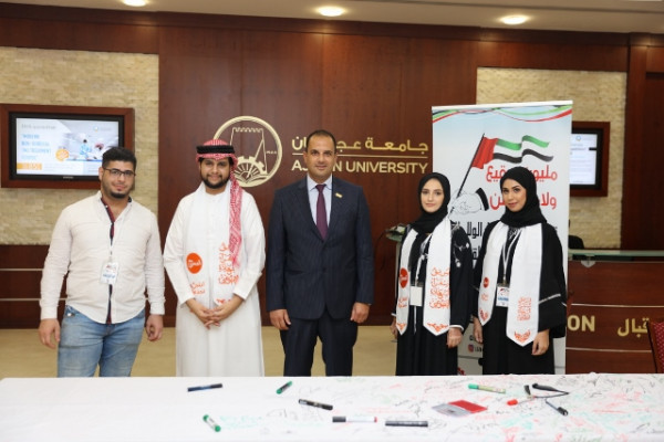 The campaign received a wide response from the AU students who have scribed words of love and loyalty to the UAE and its leadership and signed the long white cloth.
