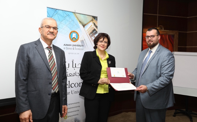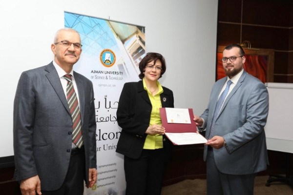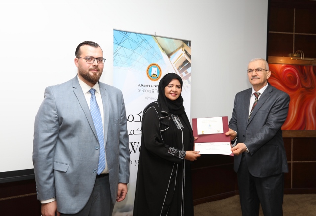 Dr. Rasha Abdullah, Faculty member at Ajman University was also honored for her efforts at making this initiative successful. Notably, Ms. Nadia Khartabeel, AU staff member achieved exceptional results by adopting this challenge and therefore was awarded for her efforts.