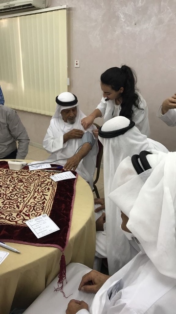 Dr. Nihhal Abdullah and a number of female students did various medical tests like measuring of blood pressure, sugar and body mass index for the elderly.m they distributed gifts as a gesture of respect and appreciation. The administrative staff in the elderly home in Ajman praised the visit by Ajman University and its family of students, professors and staff.