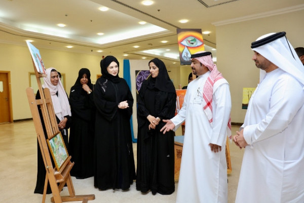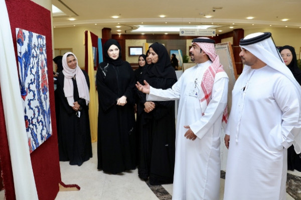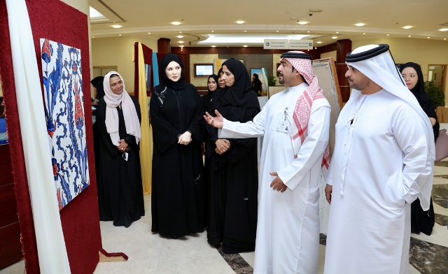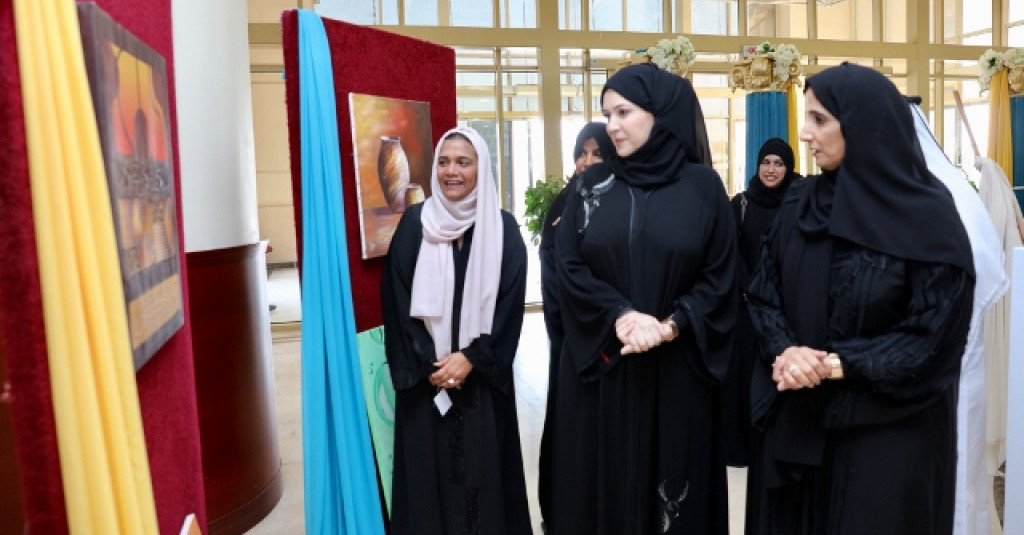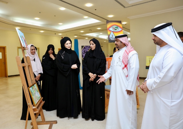 The exhibition was opened by Sheikha Azza Bint Abdullah Al Nuaimi, Director General of Humaid Bin Rashid Foundation, Chairman of the Executive Committee of the Executive Council along with Dr. Nahla Al Qasimi, Dean of Student Affairs, Ajman University.