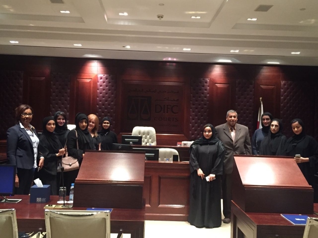 A delegation of students from College of Law – Ajman University visited the Courts of Dubai International Finance Centre, DIFC. The group was accompanied by Dr. Mostafa Abou El Enein, Assistant Professor of Commercial Law & Dr. Suzan Ali Hassan, Assistant Professor of Commercial Law.