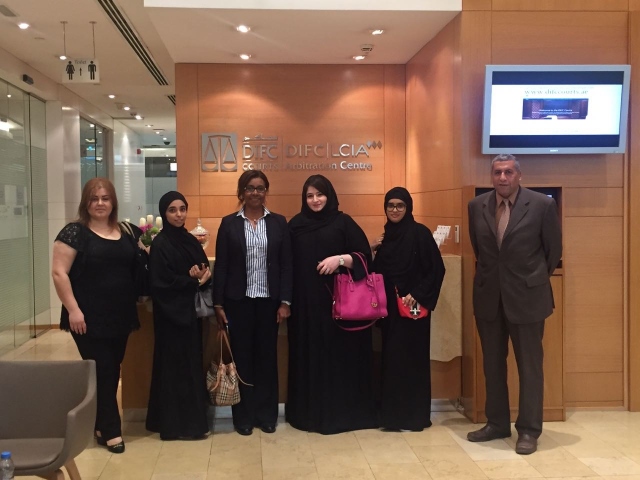 Mrs. Ayesha Bin Kalban – Case Progression Officer, welcomed the delegation and explained to them the scope of competence of DIFC and their distinguished judicial position within the frame of arbitration related to litigations emerged from the financial investments in the region and all over the world. Mrs. Ayesha has also taken the task of replying largely and sufficiently all the questions of the students.