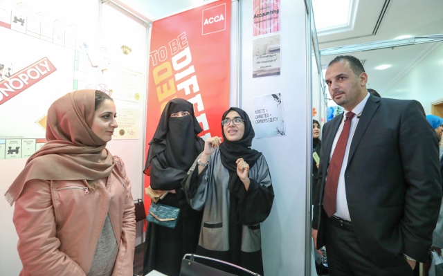 Chancellor of Ajman University Karim Seghir inaugurated the fair, organized by the Deanship of Student Affairs. Dr. Nahla Al Qassimi, Dean of Student Affairs welcomed Vice- Chancellors, Deans and faculty members who visited the fair.