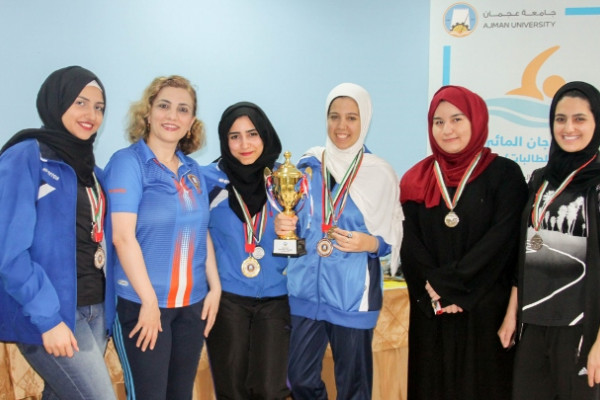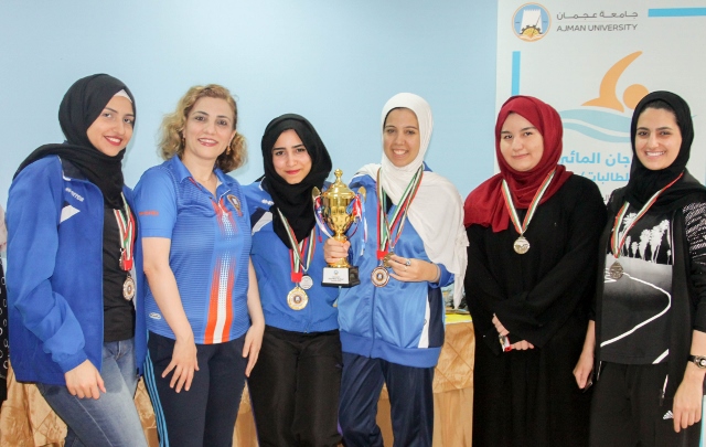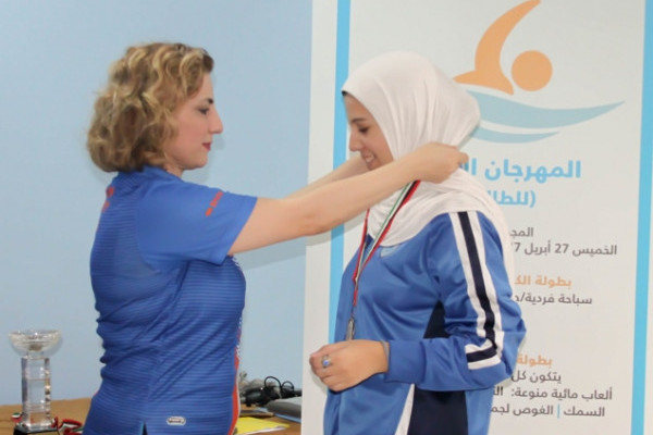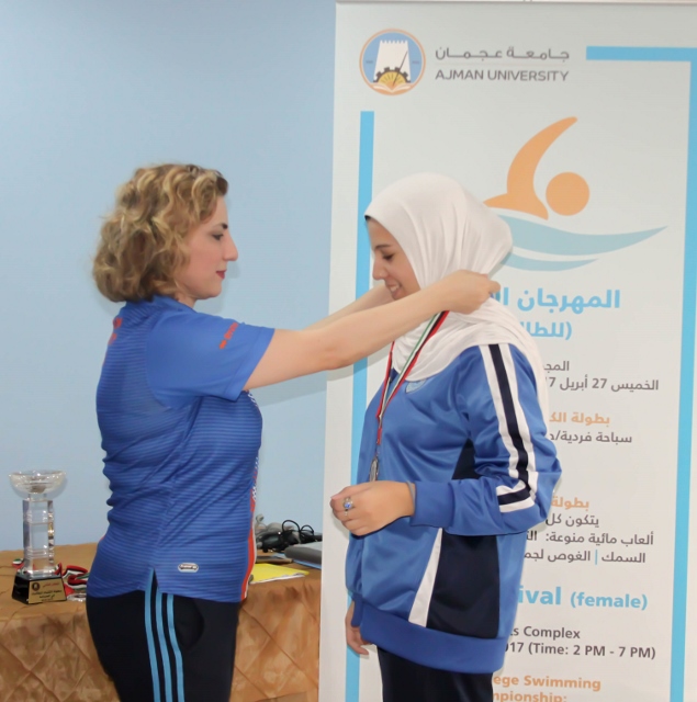 In the swimming championship, Noha Mahrous, from the College of Pharmacy won the first place, followed by Noha Al-Shazly, College of Information Technology in second place. In addition, Donia Abu Al-Sunun, College of Engineering took third place.
