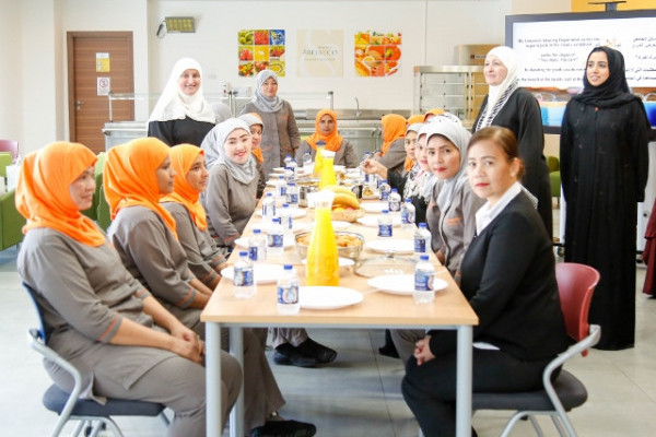 The exhibition was met with great interest by the female residents. At the end of the exhibition, the University Housing Department thanked the housing female workers for their dedication and honesty towards work and invited them to lunch.