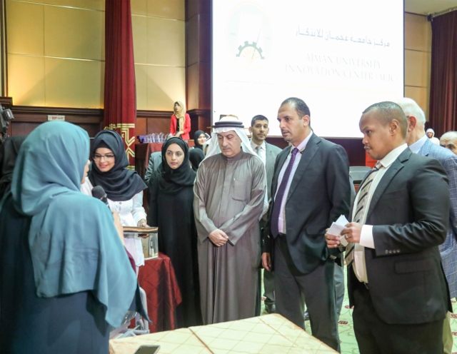 Ajman University Innovation Center (AUIC) displayed the best of innovations by the AU students; innovation that benefits the society and improves the daily lives of special needs people. The innovation gallery was opened by Her Highness Sheikha Noora Humaid Rashid Al Nuaimi, along with the AU Chancellor Dr. Karim Seghir, Dr. Mohammed Al Shami, Chairman AUIC Dr. Abdullah Ismail, Director AUIC and Eng. Mohammed Baloola, Deputy Director, AUIC.