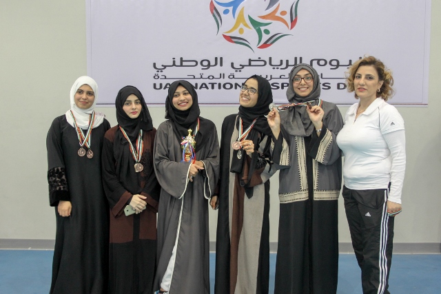 In line with the directives of His Highness Sheikh Mohammed bin Rashid Al Maktoum, UAE Vice President and Prime Minister and Ruler of Dubai, to declare a day dedicated to and honored as the National Sports Day of the United Arab Emirates; the Students Affairs Deanship celebrated this day on campus.