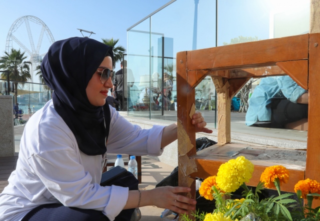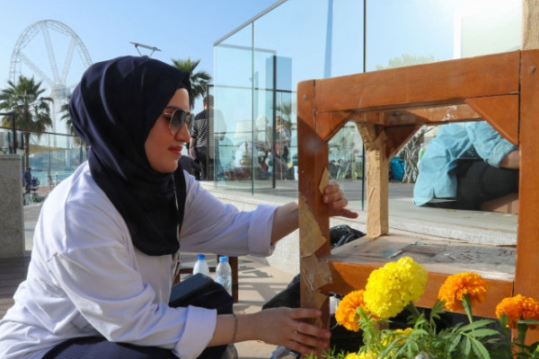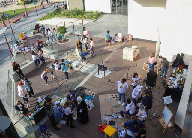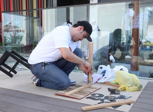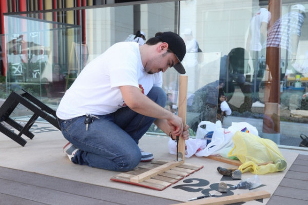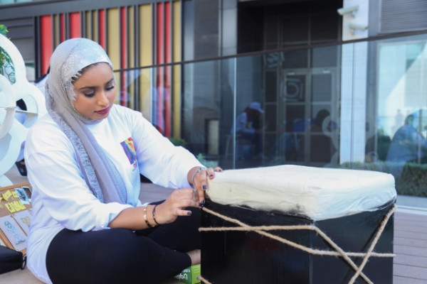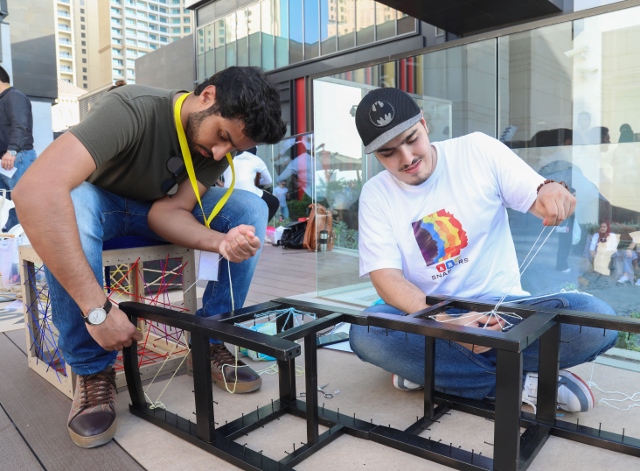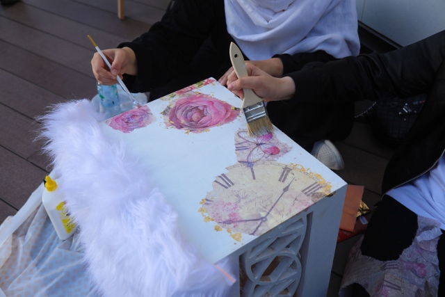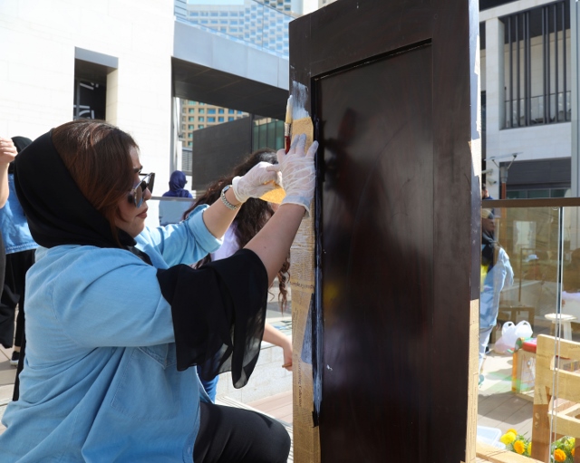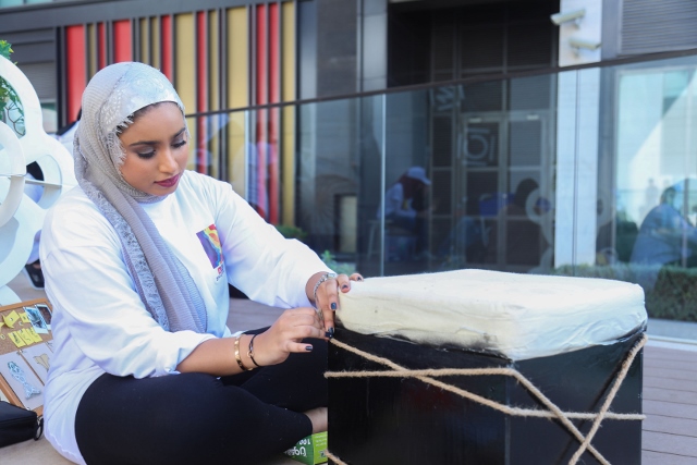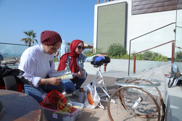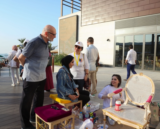 The team “Art Snappers” displayed their creative skills live for the visitors of JBR. This open workshop featured a student-only creations in the making, and illustrated the process by which AU interior design students turn old furniture into new pieces of art. The transformation took shape live before the public’s eyes, set against a beautiful music performance by two AU students.
