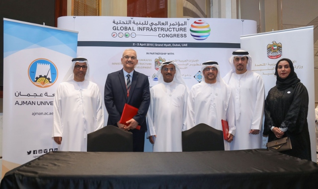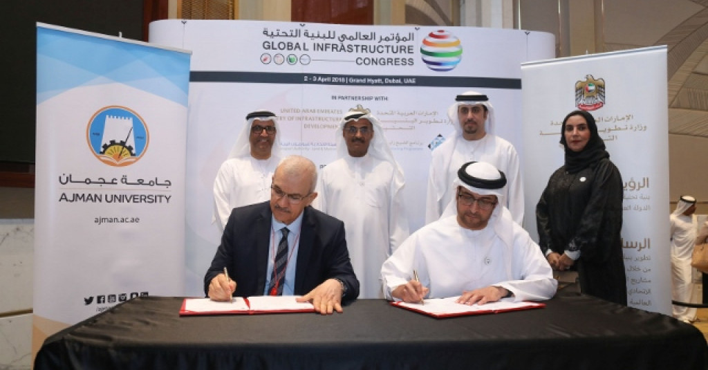 Ajman University and the Ministry of Infrastructure Development signed an MOU, it was signed on the sidelines of the 1st Global Infrastructure Congress is in line with the leadership’s directives and strategic plans to improve the UAE’s infrastructure and achieve the goals of the UAE Centennial 2071 and the UAE Vision 2021, which aim to make the UAE an international leader in the area of infrastructure.