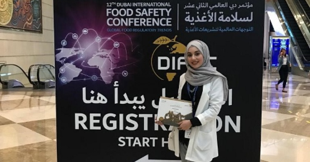 Scientific researcher, Shams Zain Al Abidin, a graduate of the College of Pharmacy and Health Sciences at Ajman University, came second in the best poster presentation entitled "Knowledge and Practice of Dietary Supplements and Micronutrients among Medical Students at Ajman University”. Dr. Muayed Shahwan at the 12th Dubai International Food Safety Conference, held on 31 October 2018, supervised the Presentation.
