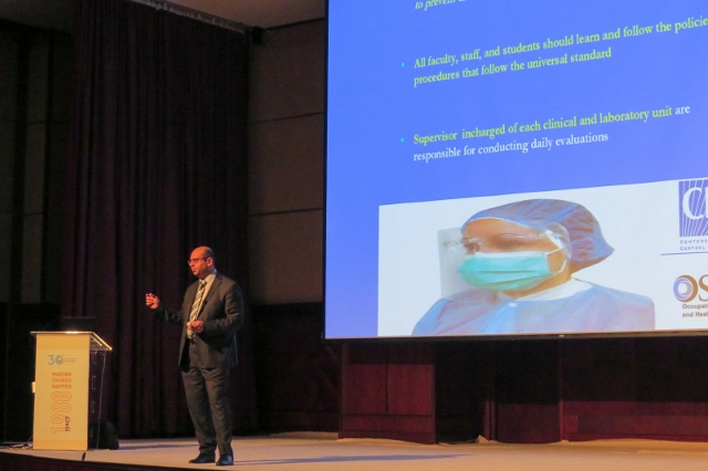 In collaboration  with the Continuing Education Center at Ajman University, the College of Dentistry organized a workshop on ways to control infection in dentistry by Dr. Awad Al-Sheikhi with the participation of Dr. Maher Al-Shayeb from the Department of Oral and Maxillofacial Surgery, and Dr. Sayed Qodratallah from the Basic Sciences.