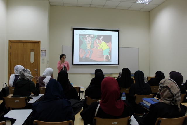 Dr. Rasha Abdulla presented a workshop on “Communication skills and body language”. It dealt with the meaning of the concept of communication skills and body language. She stressed the importance of this process without which he cannot exists in a society. Human beings need the basic communication skills to be able to develop and survive. She pointed out the various means of communicating through language and body in the most appropriate ways suited to the situations.