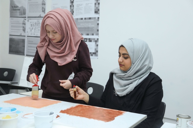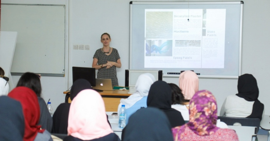 The first year students of Interior Design Department at the College of Engineering, Ajman University attended a paint workshop. The students learnt about the different shades and grades of color from the experts at the Mas Paints, Dubai. They gave the students a hands on experience about the application of decorative designer paints used for interior and exterior utilization.