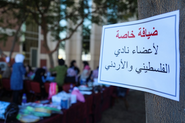 The Palestinian and Jordanian Communities organized a social get-together for women students in the university park. The members of the club performed many fun activities. The members conducted a cultural competition, distributed gifts and presented the Palestinian and Jordanian folklore. In addition, they hosted an open-air-barbecue party along with famous traditional dishes of Palestine and Jordan.