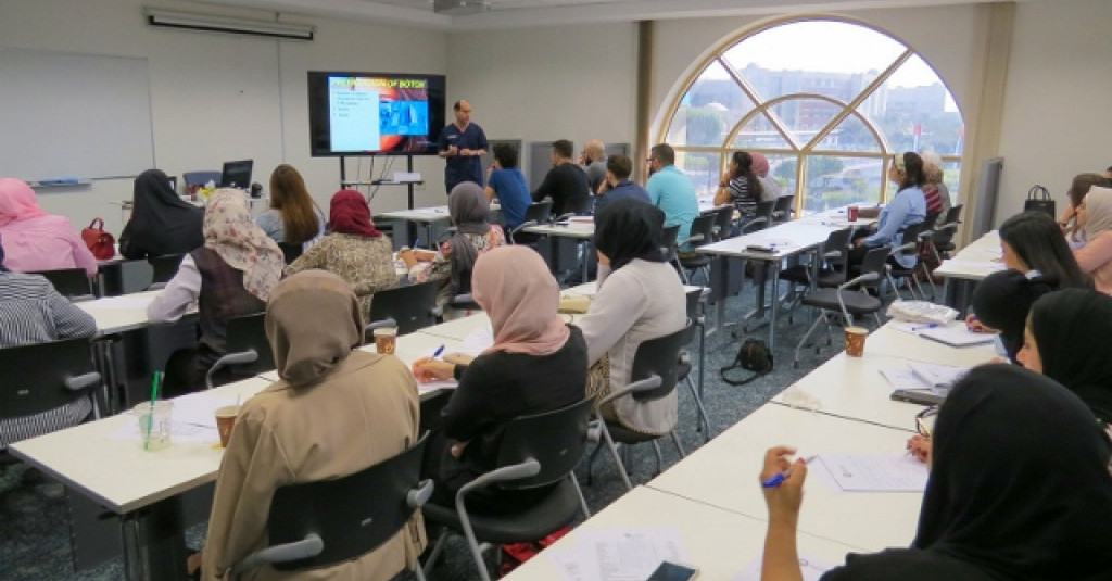 The Center for Continuing Education in cooperation with the College of Dentistry at Ajman University organized a workshop on how to use Botox in the face and neck by dentists, presented by Dr. Awad AShekhi, Assistant Professor and Senior Consultant in Oral and Maxillofacial Aesthetic Surgery and Implantologist at the College of Dentistry in the University. A large number of dentists attended the workshop.