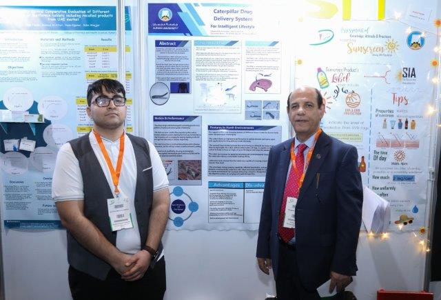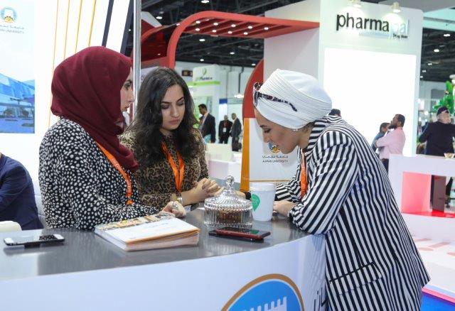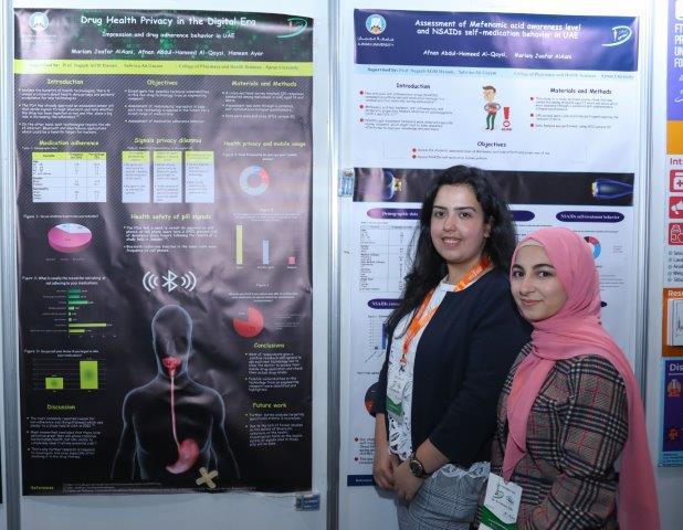 This year, the College of Pharmacy at Ajman University has participated in a distinguished pavilion presenting the remarkable progress made by the University and the College in the curricula, laboratories and researches in recent years, notably the receipt of the International Certification from the USA-based Accreditation Council of Pharmacy Education (ACPE). The students of the College of Pharmacy participated in research and projects carried out under the supervision of faculty members, and presented in the conference over three days, witnessing the participation of over 500 participations from a number of pharmacy colleges in the world.