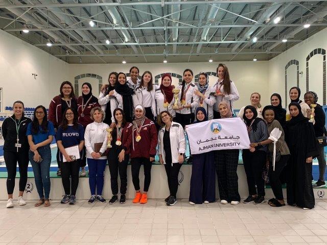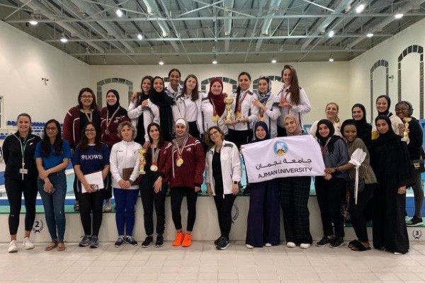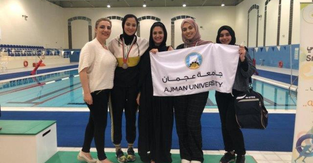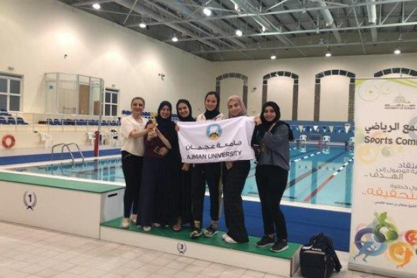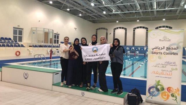 Ajman University students won the third place in “University of Sharjah Inter – university Swimming Championship” which was held at Sharjah University. The University team consisted of distinguished students Asma Ahmed, Zainab Osama, Alaa Mustafa, Alia Hisham and Dania Tabshah.