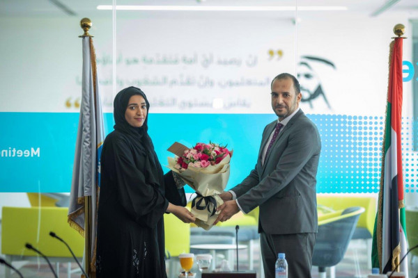 Earlier, His Highness Sheikh Humaid bin Rashid Al Nuaimi, Supreme Council Member and Ruler of Ajman and Chairman of the Board of Trustees of Ajman University, and Sheikh Ammar bin Humaid Al Nuaimi, Crown Prince of Ajman and Chairman of Ajman Executive Council, met Alaleeli and congratulated her on her well-deserved achievement.