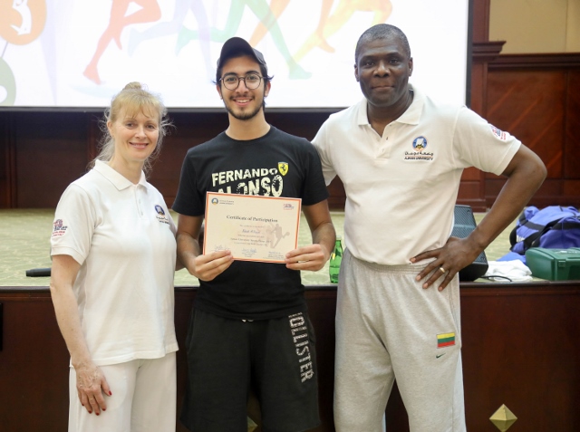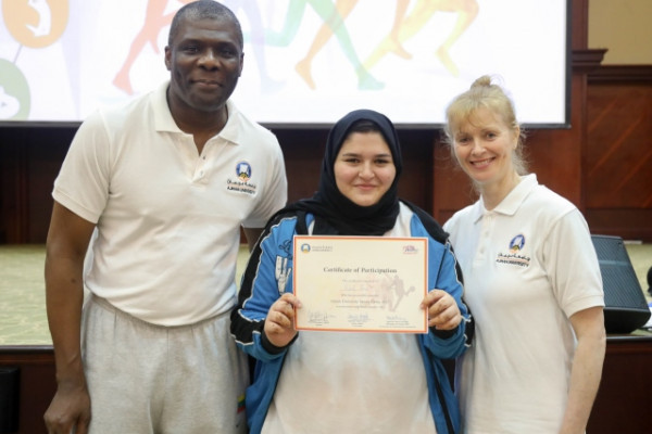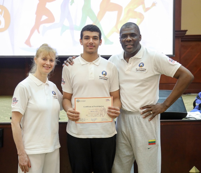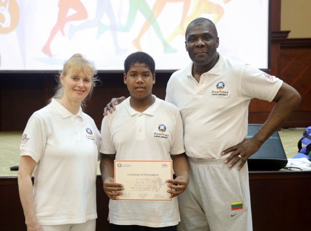 Dr. Karim Seghir, AU Chancellor honored Mr. Geoff Thompson, MBE and Mrs. Janice Thompson in recognition of their brilliant contribution at the sports camp. The Thompsons then awarded the participants with certificates, at the end of the 3 day camp.