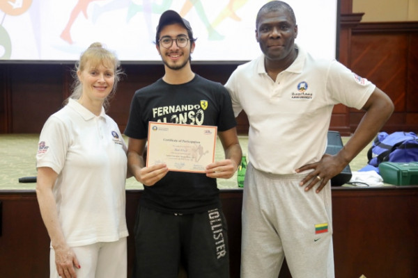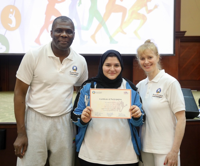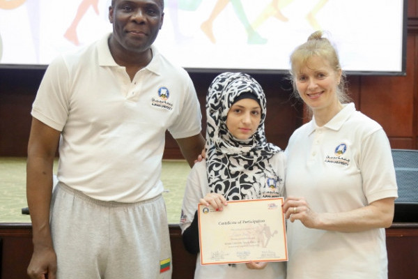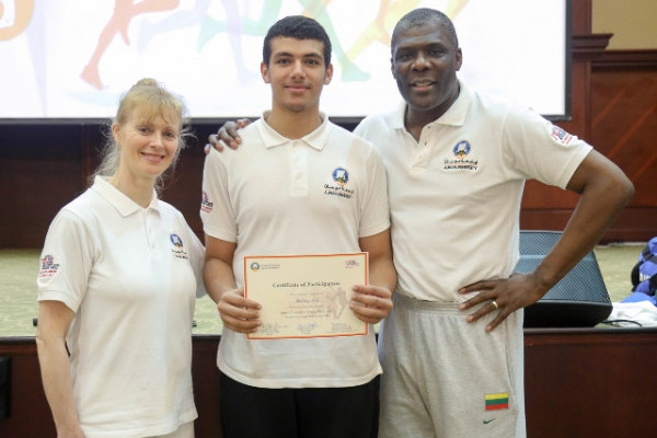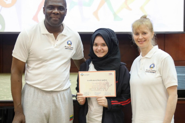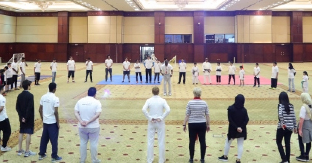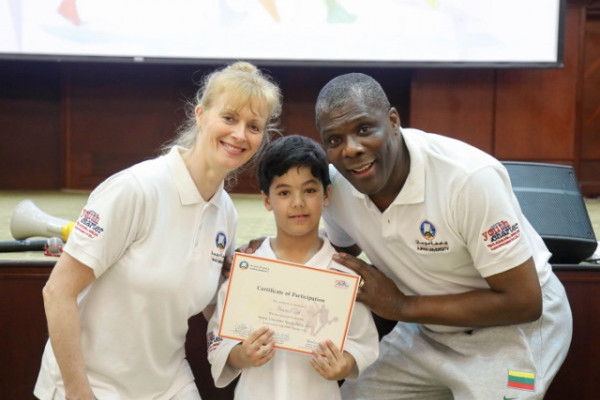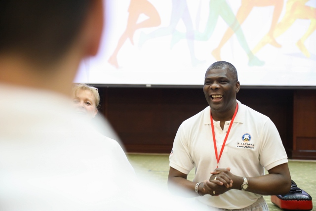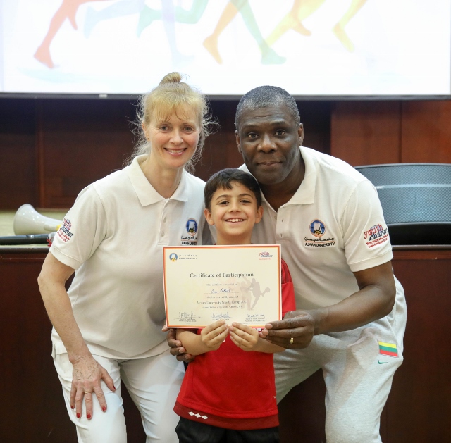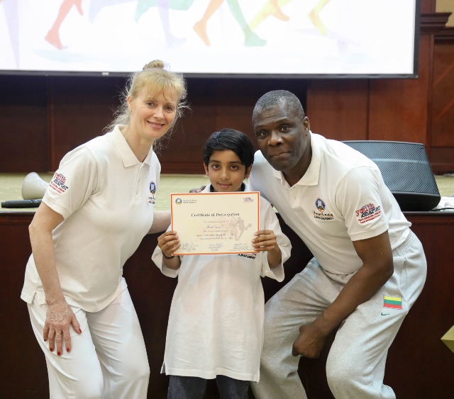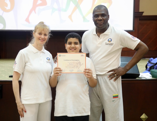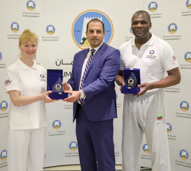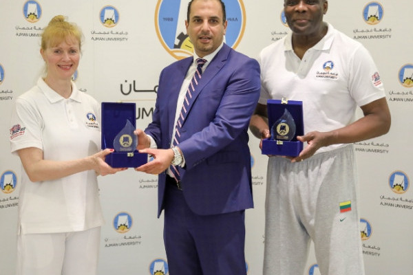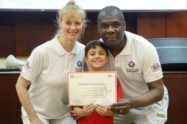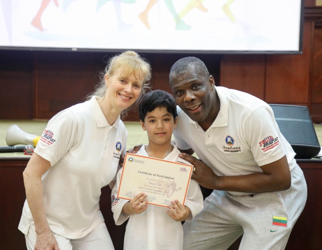 Ajman University invited the legendary couple who have etched their names in the world of sports in general and especially in the arena of Karate. Geoff Thompson, a World Karate Champion who held the title for 5 Years and Janice Thompson, also a World Karate Champion; they visited UAE for the first time and were hosted by Ajman University for a multi sports camp organized as part of the Year of Giving Initiative. The three-day camp fostered youngsters from schools across the different Emirates of Ajman, Sharjah, Dubai and others.