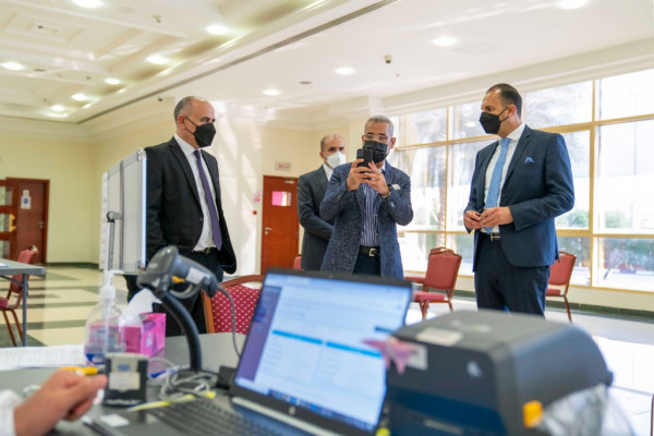 Mr. Al-Agha also visited the Sheikh Zayed Center, which houses the Covid-19 Testing and Vaccination center operated in collaboration with Tamouh Health Services, the University's Mobile Dental Clinic, and the new students registration venues.