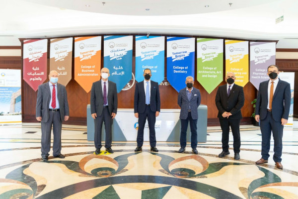 During the visit, Mustafa Al-Agha toured a number of Ajman University facilities, including the library and the university’s sports complex which features the latest equipment and is an ideal venue for sports tournaments.
