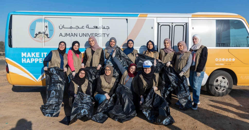 In February 2022, Ajman University took an environmentally conscious initiative by organizing a "Community Clean-Up Day." The event focused on desert cleaning, particularly vital during the winter when the desert is a preferred destination for many. In collaboration with Ajman Municipality, the university's volunteers joined hands to preserve the natural beauty and cleanliness of the desert. University volunteers participated enthusiastically in this initiative to combat desert pollution, educating themselves and raising awareness about responsible waste management.