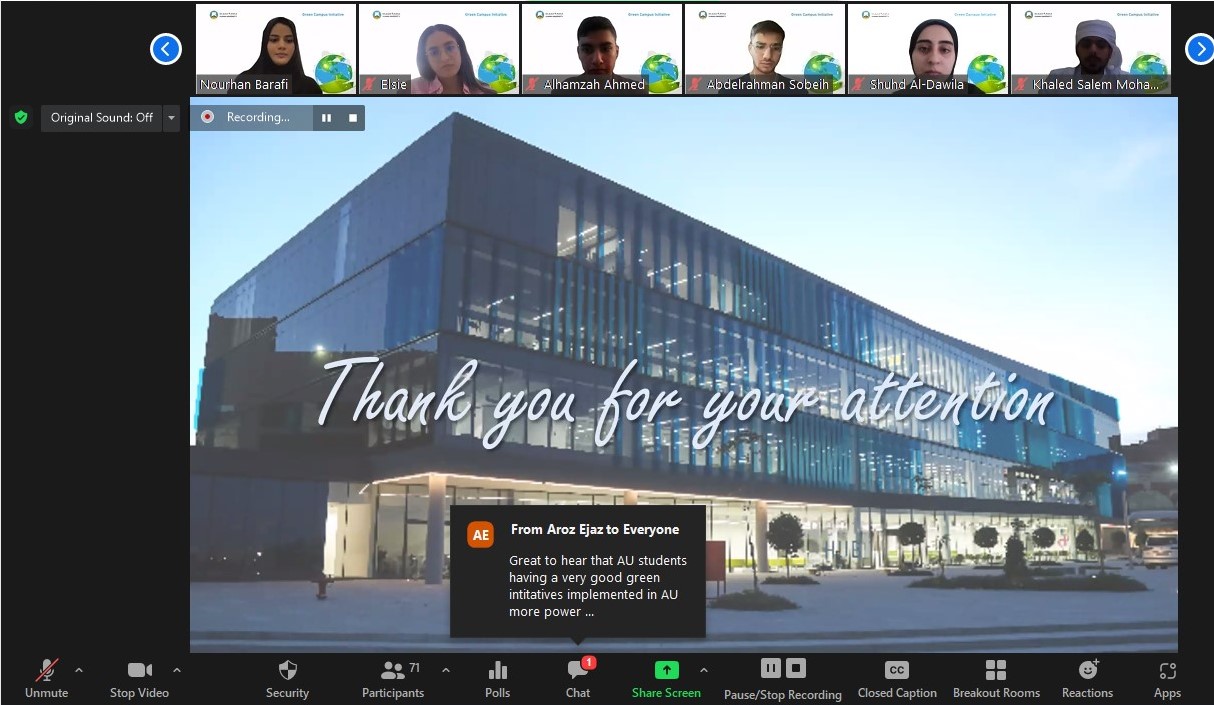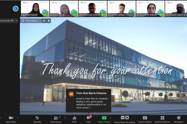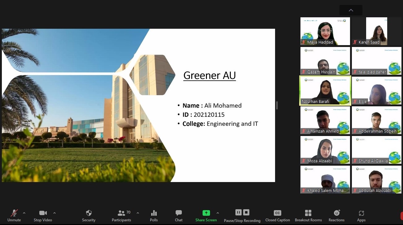 In line with UAE's Green Agenda and United Nation’s Sustainable Development Goals (SDGs)*, the Sustainable Campus initiative was launched as a green platform run by AU Youth driven towards a robust discussion and idea sharing for a sustainable future. Over 20 bright students from the College of Engineering and IT, College of Dentistry and College of Business Administration shared their remarkable ideas to make AU campus greener!